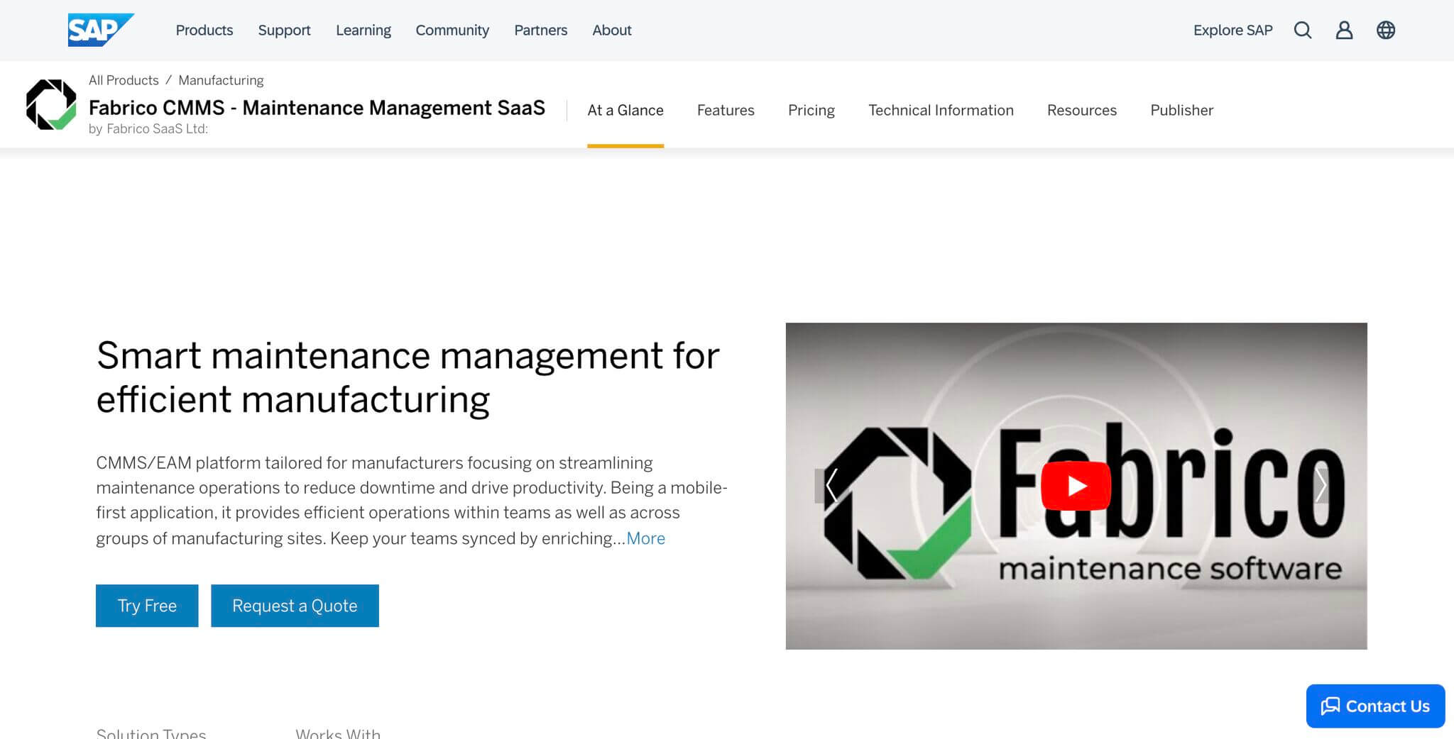 FABRICO CMMS je dostupan i na SAP Store-u, kao dokaz kvaliteta i pouzdanosti. Sistem je razvijen za kompanije koji žele pametno održavanje – sa brzim uvođenjem, mobilnom podrškom i podrškom za rad više timova na različitim lokacijama. Idealno za industrije koje teže digitalnoj transformaciji.